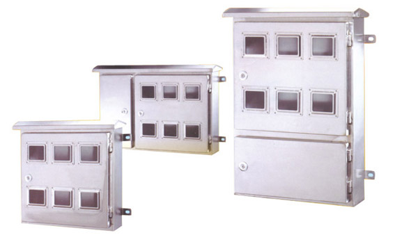 ? ? ?箱體結構分立式和臥式,外殼采用2mm優質不銹鋼板經多重折邊工藝彎制(或采用蜂窩結構的不銹鋼雙夾層復合板,具有阻燃、環保、隔熱、防凝露等性能),采用特殊不銹鋼焊接工藝,箱體成型后整體強度高,表面光潔如鏡,不留焊縫痕跡;內部安裝梁(板)為熱鍍鋅工藝處理確保二十年內不銹蝕;箱體前后開門,便于用戶操作和檢修,門四周鑲有高彈力耐老化密封膠條,每扇門均裝有明暗兩種門鎖,明鎖配有防墻防銹的遮雨罩:計量室全封閉帶鉛封裝置;箱體側面裝有防雨防異物的進線電纜穿管,底部沖有通風孔和電纜出線孔,頂部設有通風道和絲網,具有防水、防銹、防塵、防異物的功能,防護等級IP54。