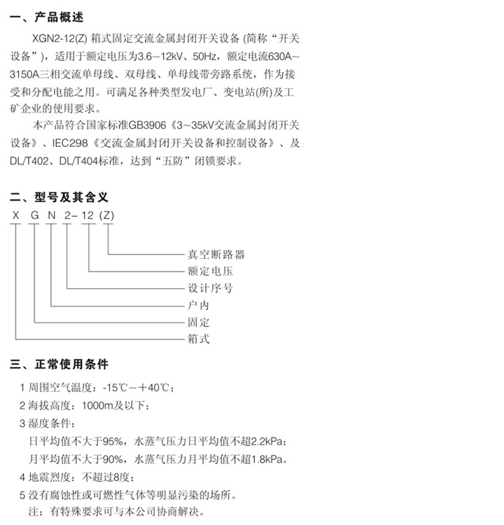XGN2-12(Z)箱型固定交流金屬封閉開關設備