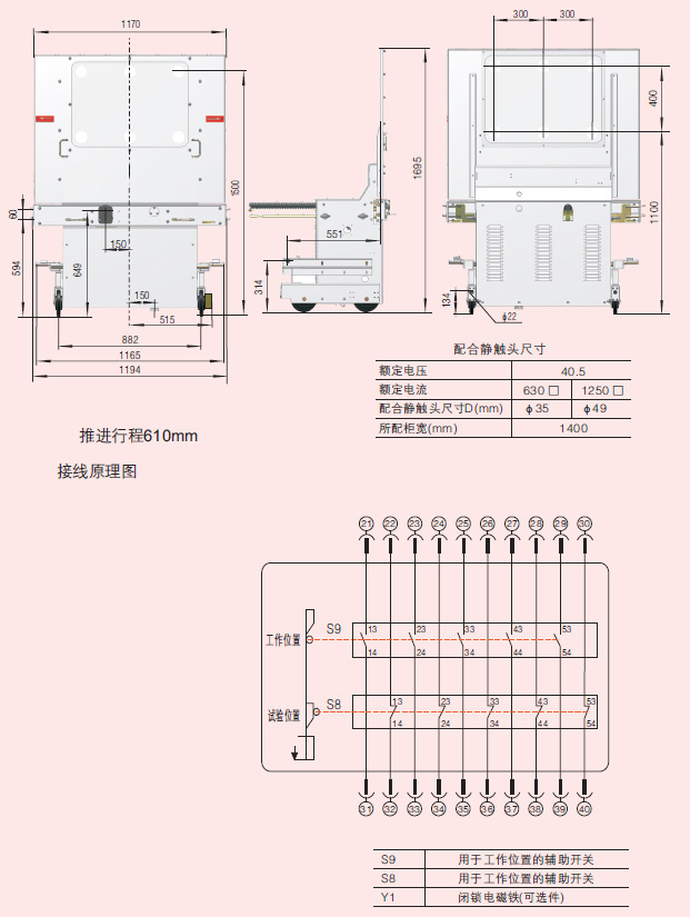 本公司設計生產的系列中手車車架中裝有絲杠螺母推進機構,可輕松移動手車,并防止誤操作而損壞推進結構;適用于KYN61-40.5鎧裝移開式金屬封閉開關設備中用于三相交流50Hz、40.5KV單母線分段電力系統,手車配置不同的一次元器件,可分別具有母線聯絡,電能測量、電力設備過載或短路保護作用,以及在系統檢修時作為保護功能單元。產品滿足GB/T11022-1999《高壓開關設備通用技術備件》的相關規定。根據手車的選用配置方案,可具有可靠的位置和聯鎖功能。
