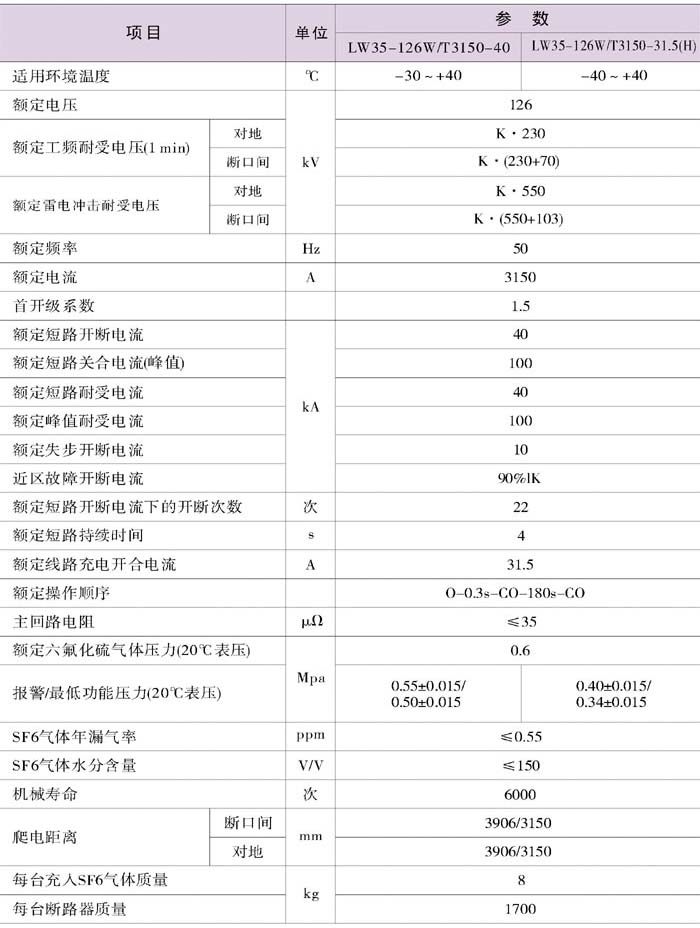 斷路器符合GB1984-2003《高壓交流斷路器》和IEC62271-100-2001《高壓交流斷路器》及QJ/RG.30.03.54-1999《LW36-126自能式斷路器技術(shù)條件》的要求。斷路器以SF6氣體為絕緣和滅弧介質(zhì),采用自能式滅弧原理,配用新型彈簧操動(dòng)機(jī)構(gòu),具有開(kāi)斷能力強(qiáng),操作功小,可靠性高的特點(diǎn)。