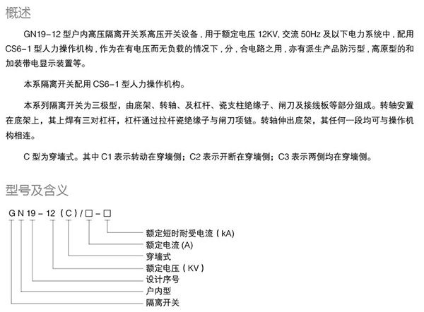 GN19-12戶內高壓隔離開關