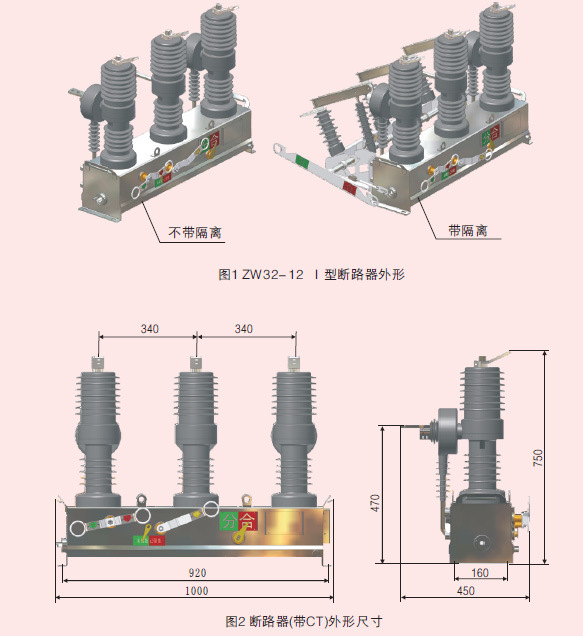 該斷路器由三相支住、機構箱組成,結構簡單明了,三相支柱及電流互感器采用戶外環氧樹固體或硅橡膠絕緣,具有耐高低溫、耐紫外線、耐老化等優點;采用小型化彈簧操動機構,分合閘能耗低、機構傳動輸出采用主軸滑動方式,無扭力損耗,分合傳動件少,可靠性高;電流互感器安裝于動端出線,二次采用插拔結構,維護更換方便。