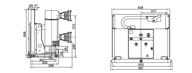 三·外形尺寸(手車式戶內高壓真空斷路器